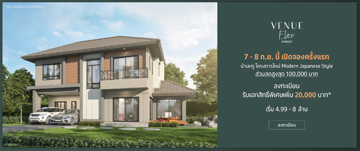 บริษัท เอสซี แอสเสท คอร์ปอเรชั่น จำกัด (มหาชน) เตรียมเปิดตัวบ้านโครงการใหม่ "เวนิว โฟลว์ รังสิต (Venue Flow Rangsit)" บ้านเดี่ยวสไตล์ MODERN JAPANESE จำนวนยูนิตน้อย เน้นความเป็นส่วนตัว เพียง 124 หลัง มาพร้อมคลับเฮ้าส์หรูขนาดใหญ่ ดีไซน์ถูกออกแบบให้เป็นเอกลักษณ์เฉพาะตัว สระว่ายน้ำระบบเกลือ ฟิตเนส และ Kids room เปิดจองครั้งแรก 7 - 8 กันยายน 2562 นี้ พร้อมรับส่วนลดสูงสุด 100,000 บาท