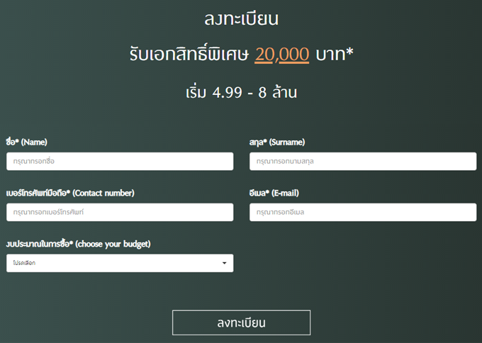 ผู้ที่สนใจลงทะเบียนเพื่อรับเอกสิทธิ์พิเศษ 20,000 บาท* ได้ที่ลิงก์ด้านล่าง