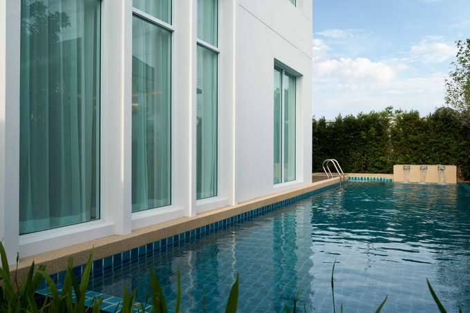GRAND BLUE DIAMOND บ้านพร้อมสระว่ายน้ำ (ออพชั่นเพิ่ม) บนพื้นที่ใช้สอย 560 ตร.ม. บนที่ดิน 140 - 224 ตร.ว. ขนาด 4 ห้องนอน 5 ห้องน้ำ ที่จอดรถ 3 - 6 คัน เหมาะสำหรับครอบครัวใหญ่ที่มีผู้อยู่อาศัยทุกช่วงวัย ห้องนอนล่างพร้อมรองรับผู้สูงอายุ ด้วยพื้นไวนิลลดแรงกระแทก Shock Absorption Floor ช่วยลดการบาดเจ็บจากอุบัติเหตุ จับกลุ่มผู้บริโภคที่ต้องการบ้านหรู ที่เพียบพร้อมไปด้วยความสะดวกสบายครบครัน ระบบสั่งการอัตโนมัติ Home Automation สามารถเปิดปิดประตูรั้ว ระบบไฟ เครื่องปรับอากาศผ่านมือถือ และระบบรักษาความปลอดภัย เหนือระดับด้วยระบบ Magnetic Sensor และ Motion Sensor