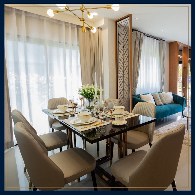 - Elegant : Art Deco ที่สง่างาม หรูหรา น่าภาคภูมิใจ ใช้ไม้สีเชอรี่ วัสดุโลหะสีทอง เฟอร์นิเจอร์ที่หรูหราและตกแต่งด้วยลวดลายเรขาคณิต