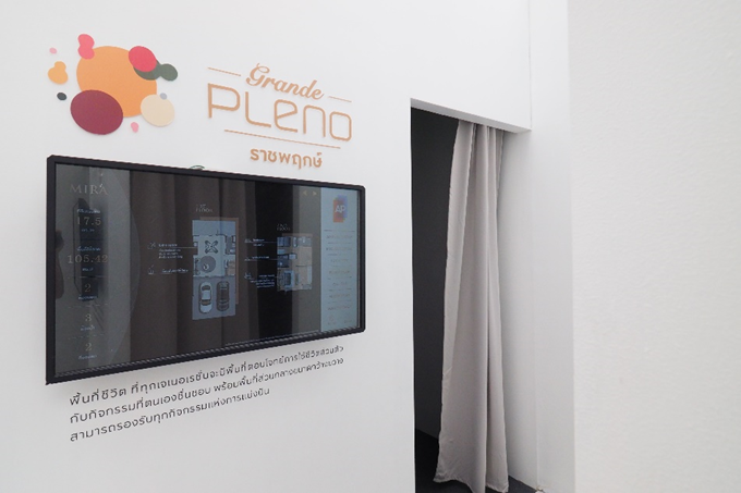 ด้านหน้าจะสังเกตเห็นจอทีวี ที่แสดงผลที่ตั้งของโครงการ GRANDE PLENO ราชพฤกษ์ โดยจะตั้งอยู่ใน ตำบลอ้อมเกร็ด อำเภอบางบัวทอง จังหวัดนนทบุรี และเต็มไปด้วยสถานที่สำคัญต่างๆ มากมาย อาทิ