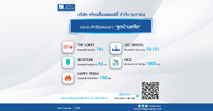 ชมรายละเอียดสิทธิประโยชน์พิเศษจาก ลลิล พร็อพเพอร์ตี้ ได้ที่ http://www.lalinproperty.com และ