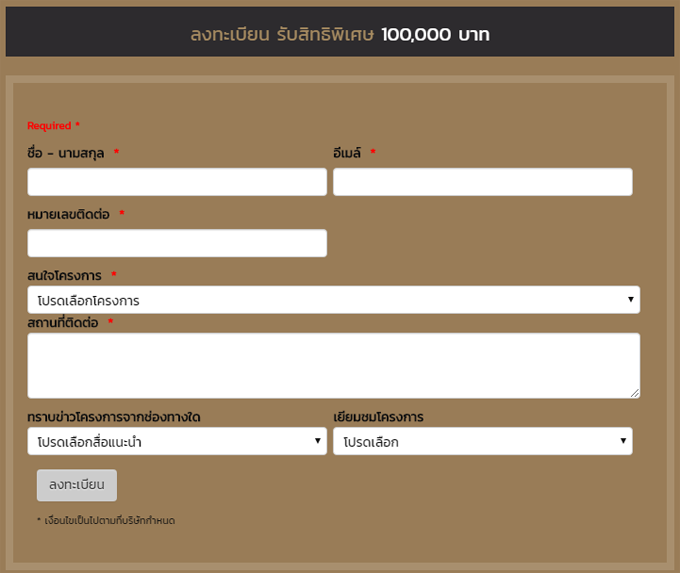 ลงทะเบียนรับสิทธิพิเศษ 100,000 บาท ได้ที่ลิงก์ด้านล่าง