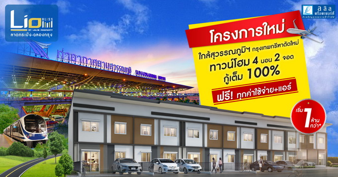 โปรโมชั่น: "ไลโอ บลิสซ์ ลาดกระบัง - ฉลองกรุง" โครงการใหม่ ใกล้สุวรรณภูมิฯ กรุงเทพกรีฑาตัดใหม่ ทาวน์โฮม 4 ห้องนอน 2 ที่จอดรถ กู้เต็ม 100% ฟรี!! ทุกค่าใช้จ่าย+แอร์ เริ่ม 1 ล้านกว่าบาท* ลงทะเบียนจองสิทธิ์ที่นี่