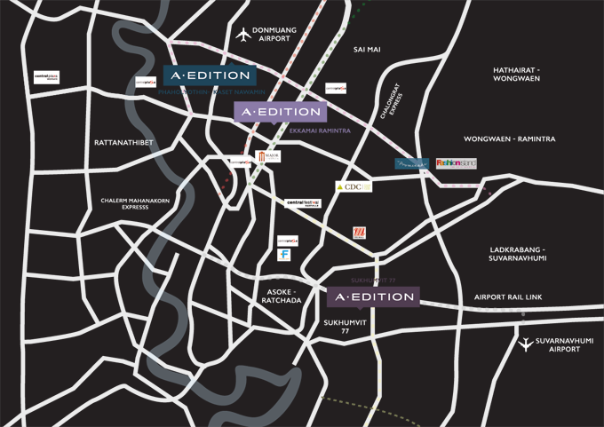 แผนที่ตั้งของโครงการ เอ อิดิชั่น ทั้ง 3 โครงการ