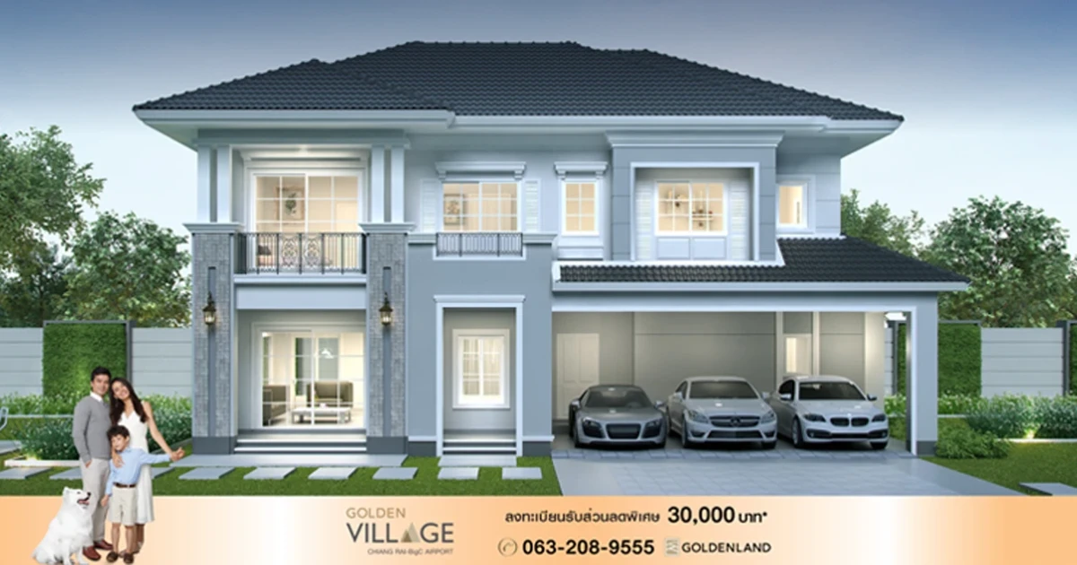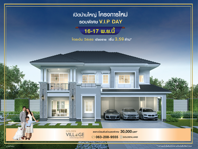 โกลเด้นแลนด์ เปิดให้จอง โกลเด้น วิลเลจ เชียงราย-บิ๊กซีแยกสนามบิน (Golden Vilage Chiangrai-Big C Yaek Sanambin) เตรียมพบโครงการใหม่ ที่เมืองเชียงราย กับบ้านเดี่ยว ล้อมรอบด้วยทะเลสาบ พร้อมคลับเฮ้าส์ แห่งเดียวในเมืองเชียงราย* ท่านที่สนใจสามารถลงทะเบียนจองออนไลน์เพื่อรับส่วนลดเพิ่ม 30,000 บาท* ได้ที่เว็บไซต์ของโกลเด้นแลนด์ค่ะ