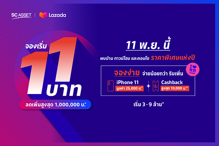 SC Asset x Lazada จัดแคมเปญ 11.11 Biggest One Day Sale จองคอนโด บ้าน ทาวน์โฮม เริ่ม 11 บาท