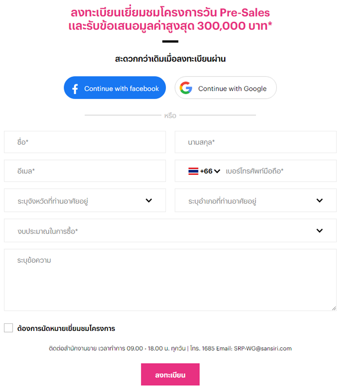 ลงทะเบียนเยี่ยมชมโครงการวัน Pre-Sales และรับข้อเสนอมูลค่าสูงสุด 300,000 บาท*