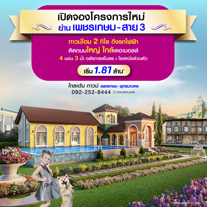 Promotion : ช็อคแรง! 16-24 พ.ย. นี้ #โปรแรงแห่งปี ทาวน์โฮมโครงการใหม่ ย่านเพชรเกษม-สาย 3 สุดยอดทำเลทอง 2 กิโล ถึงรถไฟฟ้า ติดถนนใหญ่+ใกล้เดอะมอลล์ มาพร้อมฟังก์ชัน 4 ห้องนอน 3 ห้องน้ำ อลังการสโมสร+โรงหนังส่วนตัว พร้อมสวนสวยรอบโครงการ เริ่ม 2.39 ล้าน*
