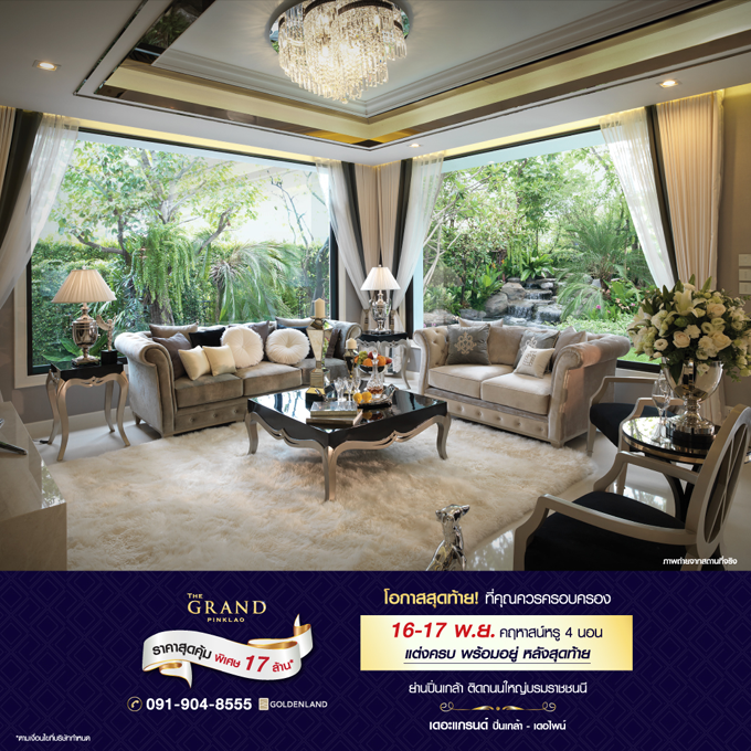 Promotion : 'โอกาสสุดท้าย ที่คุณควรครอบครอง 16-17 พ.ย. คฤหาสน์หรู 4 ห้องนอน แต่งครบ พร้อมอยู่ หลังสุดท้าย' ราคาสุดคุ้ม พิเศษเพียง 17 ล้าน* บ้านเดี่ยวหลังใหญ่ บนทำเลศักยภาพ ติดถนนบรมราชชนนี อลังการสระว่ายน้ำส่วนตัว พร้อมเรือนรับรอง