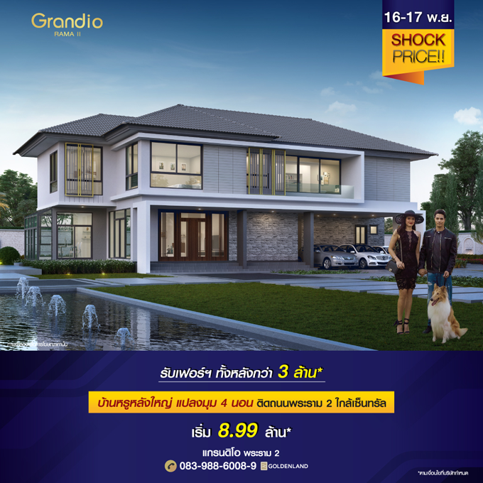 Promotion : 16-17 พ.ย. GRAND OPENING โซนสโมสร "แกรนดิโอ บางแค" บ้านเดี่ยวสุดหรู แต่งครบ พร้อมอยู่ ฟรี ค่าใช้จ่ายโอน* โปรฯ จัดเต็ม สูงสุดกว่า 3 ล้าน* เดินทางสะดวก ใกล้เดอะมอลล์ บางแค+รถไฟฟ้า เริ่ม 8-15 ล้าน*