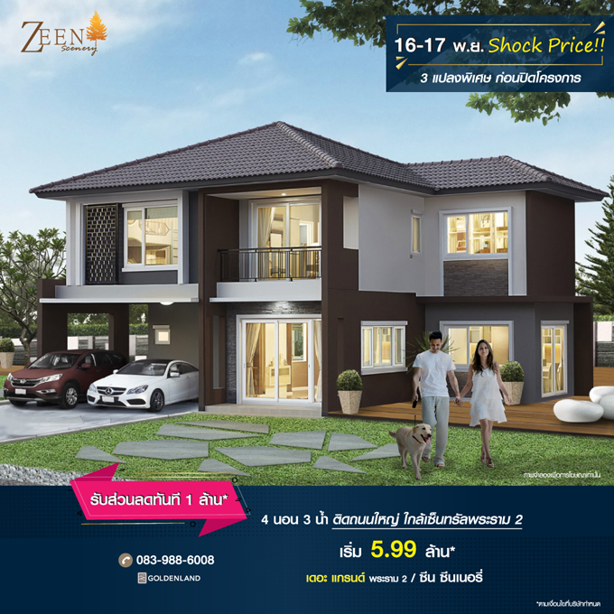 Promotion : 16-17 พ.ย. Shock Price - 3 แปลงพิเศษ ก่อนปิดโครงการ!! จองภายในงาน รับส่วนลดทันที 1 ล้าน* บ้านพร้อมอยู่ ฟังก์ชันจัดเต็ม 4 ห้องนอน 3 ห้องน้ำ 2 ที่จอดรถ เดินทางสะดวก ติดถนนใหญ่ ใกล้เซ็นทรัลพระราม 2 เริ่มเพียง 5.99 ล้าน*