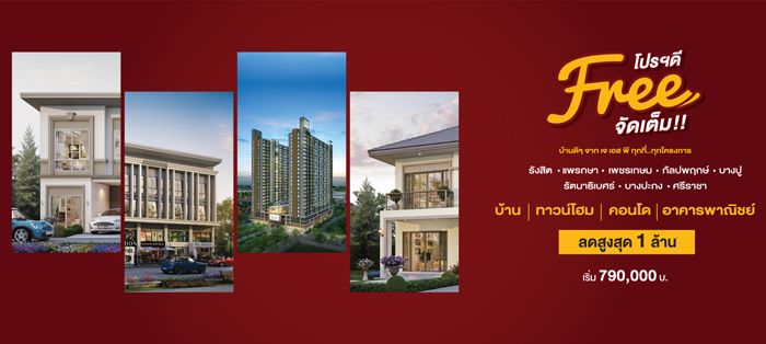 เจ เอส พี พร็อพเพอร์ตี้ จำกัด (มหาชน) จัดโปรฯ แรงที่สุดแห่งปี "เจ เอส พี" จัด โปรฯ ดี Free จัดเต็ม เพื่อลูกค้าที่สนใจ บ้าน ทาวน์โฮม คอนโด อาคารพาณิชย์ บนทำเลศักยภาพ รังสิต แพรกษา เพชรเกษม กัลปพฤกษ์ บางปู รัตนาธิเบศร์ บางประกง และศรีราชา พิเศษ! เริ่มต้น เพียง 799,999 บาท พร้อมส่วนลดสูงสุด 1 ล้านบาท วันนี้ถึง 31 ธันวาคม 62 เท่านั้น ห้ามพลาด คุ้มกว่านี้ไม่มีอีกแล้ว!