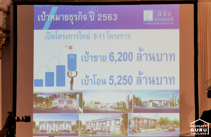 ลลิล พร็อพเพอร์ตี้ ประกาศแผนธุรกิจปี 2563 ตั้งเป้าเติบโตเหนือกว่าภาพรวมของอุตสาหกรรมต่อเนื่องติดต่อกันเป็นปีที่ 5 โดยบริษัทฯ เน้นขยายตลาดแนวราบซึ่งเป็น Real Demand เตรียมขยายโครงการใหม่เพิ่มเติมอีก 9 - 11 โครงการ มูลค่ารวมกว่า 5,000 - 5,500 ล้านบาท ปักธงเป็น National Housing Company พร้อมขึ้นเป็นผู้นำตลาดอสังหาฯ แนวราบในช่วงราคา 2 - 6 ล้านบาท โดยตั้งเป้ายอดขายในปี 2563 ที่ 6,200 ล้านบาท และยอดรับรู้รายได้ที่ 5,250 ล้านบาท หรือเติบโตขึ้นจากปีก่อนหน้าราว 13%