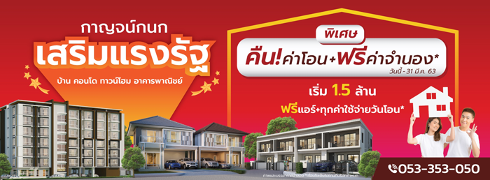 กาญจน์กนก พร็อพเพอร์ตี้ เสริมแรงรัฐ จัดโปรฯ พิเศษ! คืนค่าโอน+ฟรีค่าจำนอง* เริ่ม 1.5 ล้าน