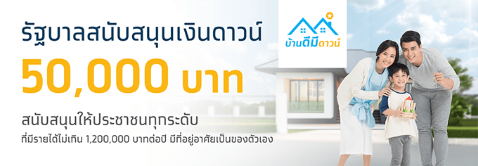 พิเศษกว่านั้น!! ลงทะเบียน "บ้านดีมีดาวน์" รัฐช่วยผ่อนดาวน์ (Cash Back) จำนวน 50,000 บาทต่อราย* จำกัด 100,000 สิทธิ์ - สำหรับผู้ที่มีรายได้ไม่เกิน 100,000 บาทต่อเดือน หรือไม่เกิน 1.2 ล้านบาทต่อปี (อยู่ในระบบภาษีสรรพากร) - สำหรับบ้านใหม่เท่านั้น ไม่กำหนดวงเงินราคาบ้าน เริ่ม 27 พฤศจิกายน 2562 - 31 มีนาคม 2563 เปิดลงทะเบียนรับสิทธิ์ 11 ธันวาคม 2562 เป็นต้นไป คลิกลงทะเบียน www.บ้านดีมีดาวน์.com