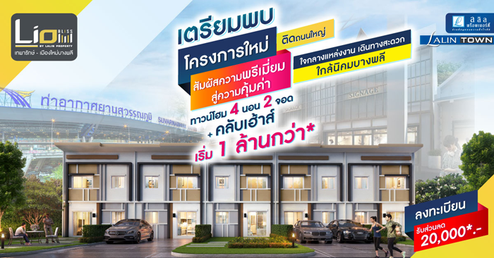 ลลิล ทาวน์ ไลโอ บลิสซ์ บางนา - เทพารักษ์ (Lalin Town Lio Bliss Bangna - Thepharak) เตรียมพบโครงการใหม่ ติดถนนใหญ่ สัมผัสความพรีเมี่ยม สู่ความคุ้มค่า ใจกลางแหล่งงาน ใกล้แหล่งชุมชน เดินทางสะดวก ใกล้นิคมบางพลี ทาวน์โฮม 4 ห้องนอน 2 ที่จอดรถ + คลับเฮ้าส์ ท่านที่สนใจสามารถลงทะเบียนพร้อมเลือกแปลงสวยก่อนใครได้ที่เว็บไซต์ของ ลลิล พร็อพเพอร์ตี้