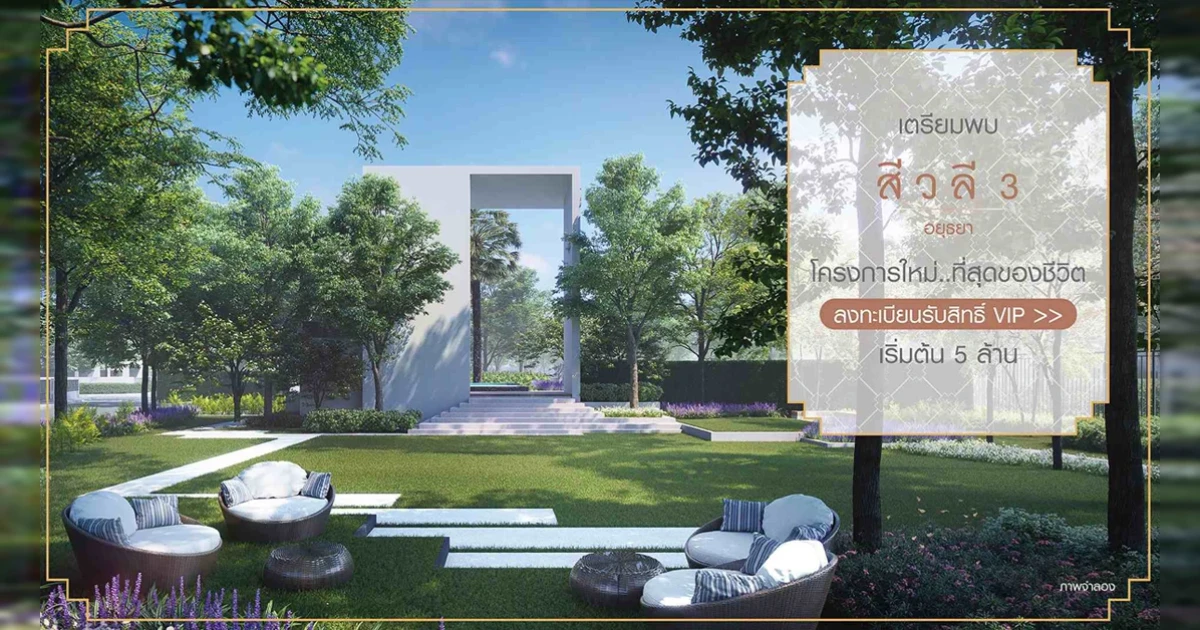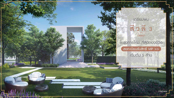 "สีวลี 3 อยุธยา" โครงการใหม่ โดดเด่นเป็นเอกลักษณ์ในสไตล์โมเดิร์น เริ่ม 5 ล้าน ลงทะเบียนรับสิทธิ์ VIP
