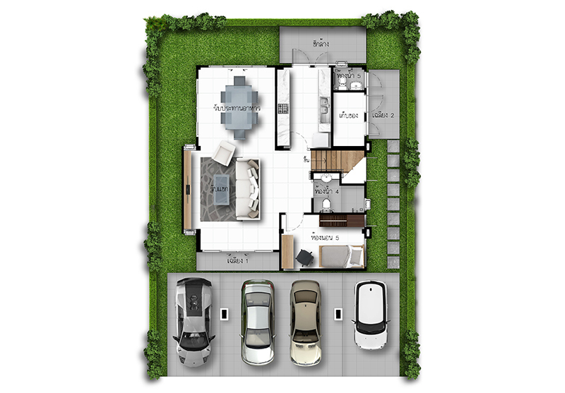2. แบบบ้าน ศุภศิริ บ้านเดี่ยว 3 ชั้น พื้นที่ใช้สอยมากถึง 321 ตร.ม. 5 ห้องนอน 1 ห้องเก็บของ หรือปรับเปลี่ยนเป็นห้องแม่บ้าน 5 ห้องน้ำ 4 ที่จอดรถ พร้อมดีไซน์ที่เป็นเอกลักษณ์เฉพาะตัว อาทิ "Grand Vertical Living Room" ห้องนั่งเล่นเพดานสูงถึง 6 เมตร
