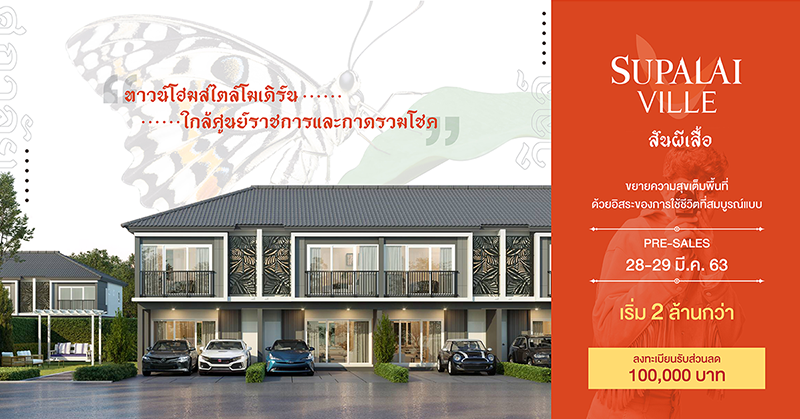 28-29 มี.ค. นี้ เตรียมพบกับโครงการใหม่ ศุภาลัย วิลล์ สันผีเสื้อ จ.เชียงใหม่ เริ่ม 2 ล้านกว่า