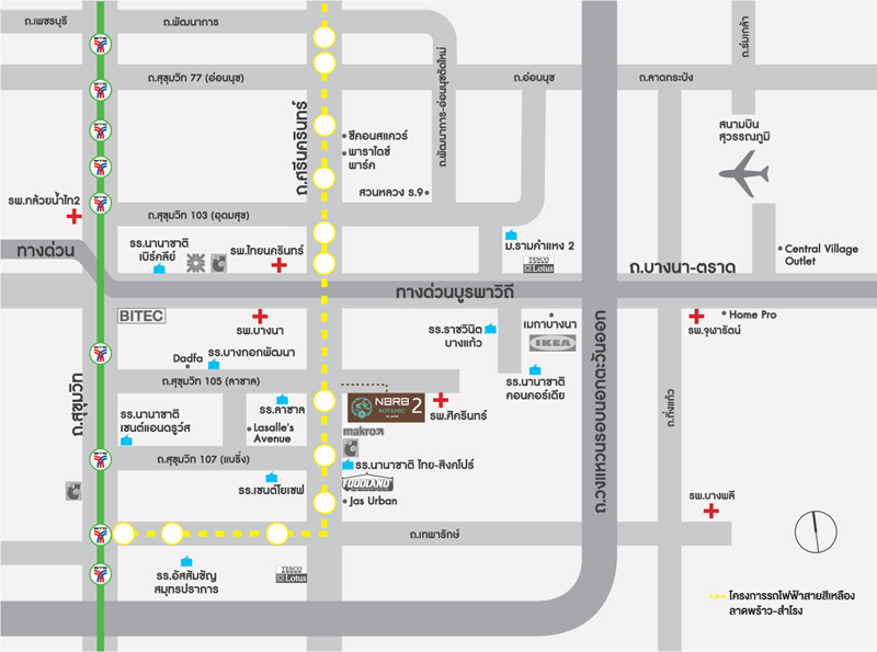 - ใกล้สถานีรถไฟฟ้า "ศรีลาซาลสายสีเหลือง" ใกล้ ทางขึ้น-ลงทางด่วนบางนา