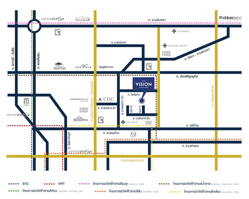 "เดอะ วิชั่น ลาดพร้าว - นวมินทร์ (The Vision Ladprao - Nawamin)" ทาวน์โฮม 2 - 3 ชั้น ฟังก์ชันการใช้งานราวกับบ้านเดี่ยว หน้ากว้าง 5 - 5.5 เมตร ภายในโครงการมาพร้อมพื้นที่ส่วนกลางขนาดใหญ่ มีคลับเฮ้าส์, สระว่ายน้ำ ขนาด Half Olympic, ฟิตเนส, Co-Worlking Space, Games Room และสนามเด็กเล่น โครงการตั้งอยู่ในซอยนวมินทร์ 85 ถนนนวมินทร์ ใกล้รถไฟฟ้าสายสีน้ำตาล เดินทางสะดวก เชื่อมต่อถนนหลักเส้นอื่นได้หลายทาง