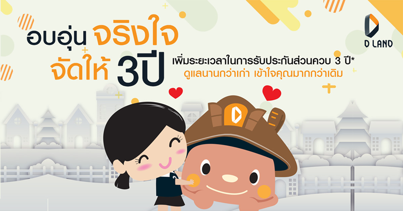 ดี - แลนด์ฯ เปิดแคมเปญ อบอุ่น จริงใจ จัดให้ 3 ปี ขยายเวลารับประกันส่วนควบ 3 ปี! ดูแลนานกว่าเก่า
