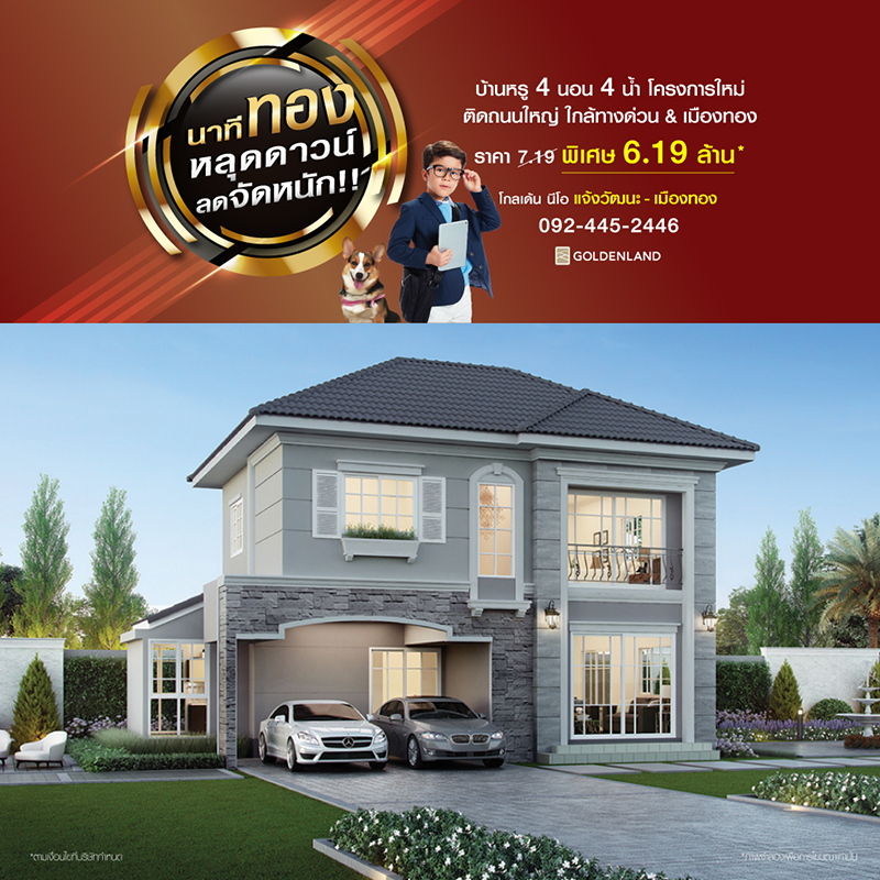 Promotion : 25 ก.พ.-31 มี.ค. นี้ นาทีทอง!! หลุดดาวน์ ลดจัดหนัก บ้านหรู 4 ห้องนอน 4 ห้องน้ำ โครงการใหม่ ติดถนนใหญ่ ใกล้ทางด่วน & เมืองทอง ราคา 7.19 ล้าน* พิเศษ เริ่ม 6.19 ล้าน*