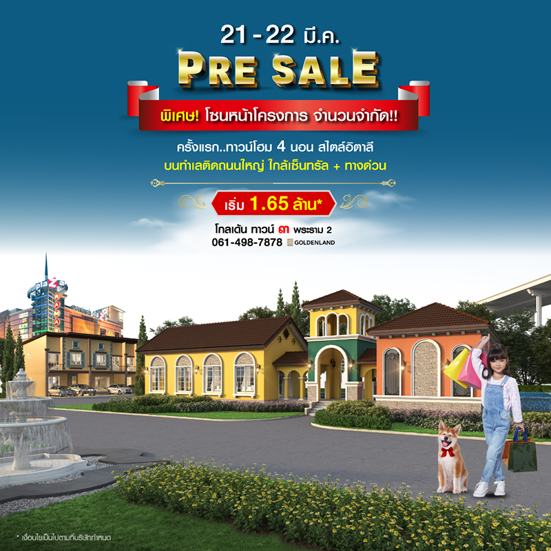 Promotion : แรงต่อเนื่อง 21-22 มีค. PRE-SALE โครงการใหม่ โซนหน้าโครงการ จำนวนจำกัด เริ่ม 1.65 ล้าน* ครั้งแรก...กับทาวน์โฮม 4 ห้องนอน สไตล์อิตาลี บนทำเลติดถนนใหญ่ ใกล้เซ็นทรัล+ทางด่วน