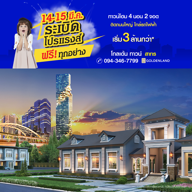 Promotion : 14-15 มี.ค. ระเบิดโปรแรงส์ ฟรี ทุกอย่าง* ทาวน์โฮม 4 ห้องนอน 2 ที่จอดรถ สไตล์อังกฤษ สุดยอดทำเลทอง เพียง 6 กิโล ถึงสาทร* ติดถนนใหญ่ ใกล้รถไฟฟ้า เริ่ม 3 ล้านกว่า*