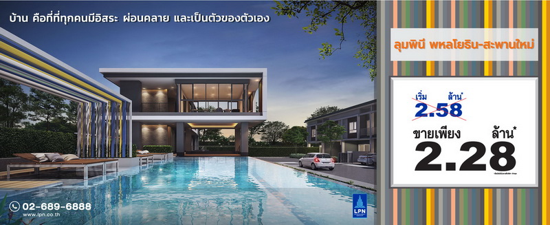 โปรโมชั่น: ลุมพินี พหลโยธิน - สะพานใหม่ ทาวน์โฮมดีไซน์ เพื่อคนรุ่นใหม่ที่มองหาแรงบันดาลใจในการเริ่มต้นชีวิต เริ่มต้นสร้างครอบครัว สะท้อนความร่วมสมัยที่เรียบง่ายแต่ไม่ธรรมดา ราคาพิเศษ เริ่ม 2.28 ล้านบาท