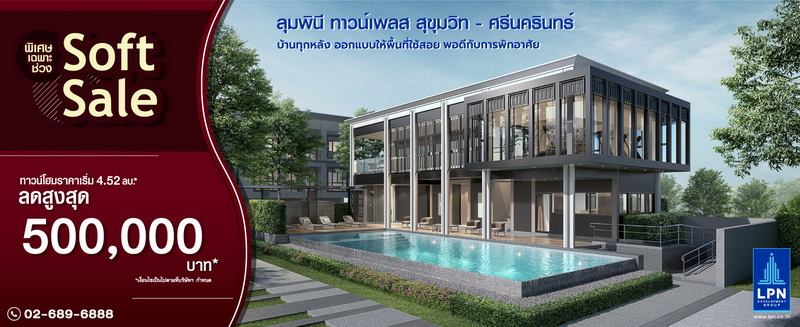 โปรโมชั่น: ลุมพินี ทาวน์เพลส สุขุมวิท - ศรีนครินทร์ พิเศษเฉพาะช่วง Soft Sale ทาวน์โฮมราคาเริ่ม 4.52 ล้านบาท* ลดสูงสุด 500,000 บาท