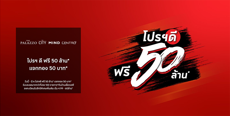 โปรโมชั่น: โปรฯ ดี ฟรี 50 ล้าน* วันนี้ - 31 มีนาคม 2563 พบโปรฯ ดี ฟรี 50 ล้าน* แจกทองคำ 50 บาท* รับและลดกว่า 100 รายการ* กับบ้านเดี่ยวใกล้ทางด่วนและรถไฟฟ้า ลงทะเบียนรับสิทธิพิเศษ เริ่ม 4.99 - 60 ล้าน*