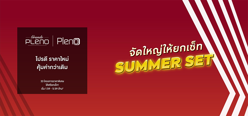 โปรโมชั่น: Pleno summer set โปรฯ คุ้มค่ากว่าเดิม ราคาใหม่เป็นเจ้าของได้ง่ายขึ้น เริ่ม 1.59 - 5.59 ล้าน* กู้เต็ม 110%* ผ่อนล้านละ 800* ฟรีเครื่องใช้ไฟฟ้าทั้งหลัง* ฟรีทุกค่าใช้จ่าย* พบทาวน์โฮมและบ้านแฝด ทำเลเมือง กับ 33 โครงการ พร้อมอยู่ เดินทางสะดวก ใกล้รถไฟฟ้าและทางด่วน รายล้อมด้วยสิ่งอำนวยความสะดวกครบครัน อาทิ ห้างสรรพสินค้า โรงเรียนชั้นนำ คอมมูนิตี้มอลล์ ร้านสะดวกซื้อ ให้คุณใช้ชีวิตประจำวันได้อย่างสะดวกสบาย แปลงขายและโปรโมชั่นเป็นไปตามที่บริษัทกำหนด ลงทะเบียนรับสิทธิพิเศษเพิ่มสูงสุด 100,000 บาท* ภายใน 4 - 5 เมษายน 2563 นี้เท่านั้น