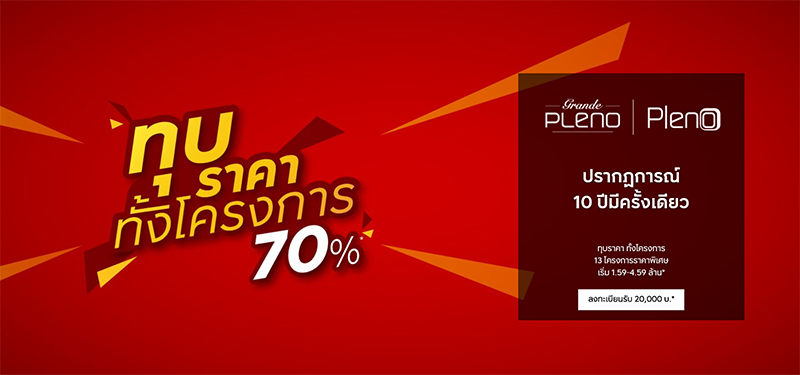 โปรโมชั่น: PLENO ทุบราคาทั้งโครงการ 70%* ในราคาเริ่มต้นเพียง 1.59 - 4.59 ล้าน* (จากปกติ 1.89 - 5.09 ล้าน*) พร้อมกู้ 110% และอัตราดอกเบี้ยพิเศษ พรีเมียมทาวน์โฮมพร้อมอยู่ 13 โครงการ ราคาพิเศษสุดแห่งปี ให้คุณเป็นเจ้าของได้ง่ายขึ้น ดีไซน์ตอบโจทย์การอยู่อาศัย สำหรับคนเมือง พร้อมพื้นที่ส่วนกลางครบครันสำหรับทุกกิจกรรมของครอบครัว ลงทะเบียนรับสิทธิพิเศษเพิ่มสูงสุด 20,000 บาท*