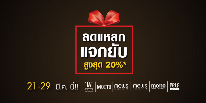 โปรโมชั่น: ลดแหลก แจกยับ สูงสุด 20% 21 - 29 มีนาคม 2563 นี้!! ดูโครงการที่เข้าร่วมที่นี่