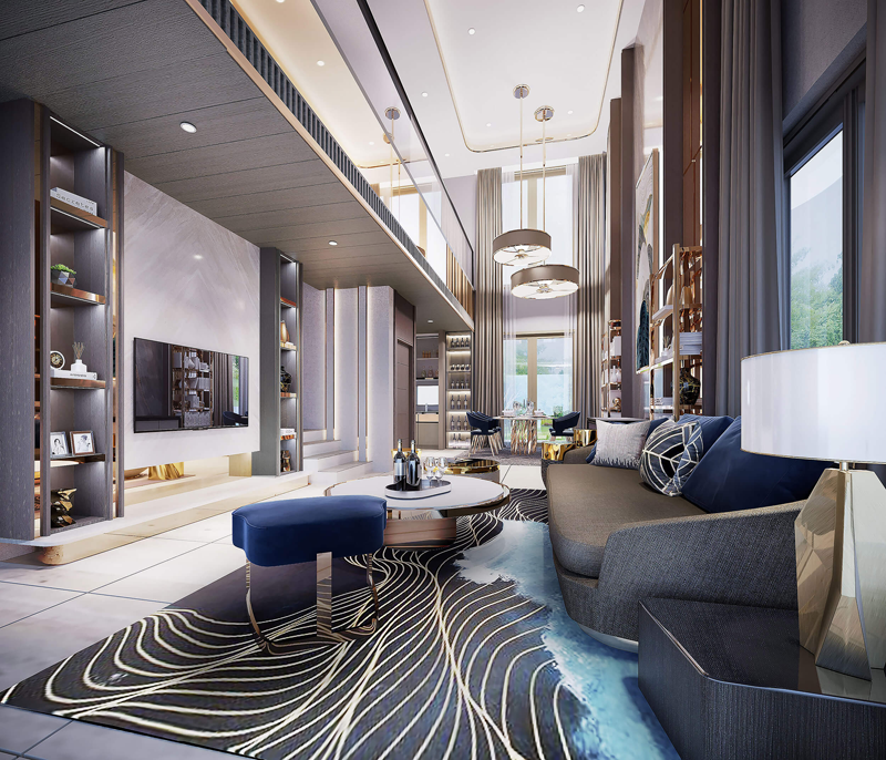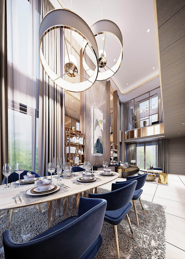 - Double Volume Design สัมผัสความสบายตั้งแต่ก้าวแรกด้วย Living & Dining Hall ที่สูงโปร่ง และดูกว้างขวาง