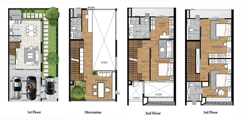 1. Premium Urban Home 3.5 ชั้น - หน้ากว้าง 6 เมตร พื้นที่ใช้สอยกว่า 280 ตารางเมตร ขนาด 3 ห้องนอน 5 ห้องน้ำ พร้อม Extra Space ที่จอดรถ 2-5 คัน