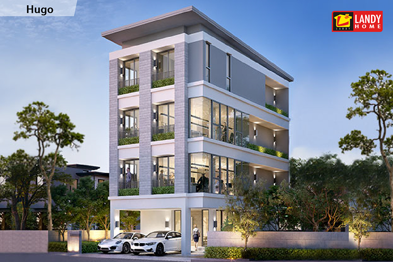 HUGO - มีขนาดพื้นที่ใช้สอย 428 ตร.ม. เหมาะสำหรับที่ดินหน้าแคบ ขนาดอาคาร 9x14 ม. ขนาดที่ดิน 58.5 ตร.ว. เป็นสไตล์โฮมออฟฟิศ 4 ชั้น 1 ห้องนอน 4 ห้องน้ำ และ 4 ที่จอดรถ ออกแบบในสไตล์ Modern เรียบง่าย แฝงความทันสมัย ตอบโจทย์คนเมืองรุ่นใหม่ที่เริ่มมีกิจการของตนเอง สามารถใช้ชีวิตทั้งการพักผ่อนและทำงานได้อย่างคล่องตัว โดยราคาค่าก่อสร้างอยู่ที่ 10-12 ล้านบาท