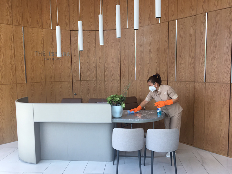 รวมถึงอาคารสำนักงานอาคารชาญอิสสระทาวเวอร์ ถ.พระราม 4 และ อาคารชาญอิสสระทาวเวอร์ 2 ถ.เพชรบุรีตัดใหม่ บริษัทฯ ได้กำหนดมาตรการเฝ้าระวัง และป้องกันการแพร่ระบาดของเชื้อไวรัส โควิด-19 ที่เป็นมาตรฐานตามคำแนะนำของกรมควบคุมโรค กระทรวงสาธารณสุข โดยให้มีการทำความสะอาดจุดสัมผัสต่างๆ อย่างเคร่งครัด เช่น ปุ่มกดเรียกลิฟท์, ปุ่มกดบอกชั้นในลิฟท์, เคาน์เตอร์ประชาสัมพันธ์, โต๊ะ เก้าอี้รับแขกภายใน Lobby เป็นต้น ทำการฉีดพ่นฆ่าเชื้อบริเวณพื้นที่ส่วนกลางที่เสี่ยงต่อการแพร่กระจายของเชื้อโรค มีการตรวจวัดอุณหภูมิร่างกายทุกคนก่อนเข้าภายในโครงการ วางเจลแอลกอฮอล์ล้างมือบริเวณพื้นที่ส่วนกลางเพื่อให้บริการกับลูกค้า และ/หรือผู้มาติดต่อภายในโครงการ มีการฉีดพ่น ทำความสะอาดพัสดุ-สิ่งของทั้งหมดที่เข้ามาส่งภายในโครงการ ปิดให้บริการสระว่ายน้ำ ห้องสตีม ห้องออกกำลังกาย เป็นการชั่วคราว พร้อมทั้งกำชับให้ทุกคนดูแลป้องกัน และรักษาสุขภาพของตัวเองด้วยการสวมหน้ากากอนามัย ถุงมือในกรณีพนักงานทำความสะอาด ทุกครั้งระหว่างปฏิบัติหน้าที่ เป็นต้น ทั้งนี้การดำเนินการมาตรการทั้งหมดได้คำนึงถึงสุขภาพอนามัย และความปลอดภัยของลูกค้า พนักงาน และผู้มาติดต่อ เป็นสำคัญ