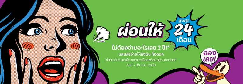 แสนสิริ ผ่อนให้ สูงสุด 24 เดือน! ไม่ต้องจ่ายอะไรเลย 2 ปี!* แสนสิริจ่ายให้ ทั้งต้น ทั้งดอก ที่บ้านเดี่ยว คอนโด และทาวน์โฮมพร้อมอยู่จากแสนสิริ พร้อมรับข้อเสนอดีๆ อีกมากมาย อาทิ