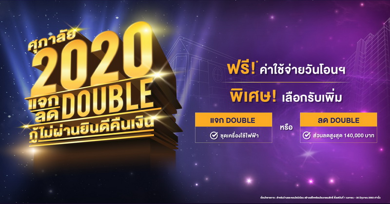 ศุภาลัย Double Twenty แจก Double ลด Double ฟรี!* ค่าใช้จ่ายวันโอนฯ พิเศษ! แจก Double เครื่องใช้ไฟฟ้า 5 ชิ้น หรือเลือกรับส่วนลด Double มูลค่าสูงสุด 140,000 บาท เมื่อซื้อโครงการบ้านและคอนโดมิเนียม พร้อมโอนฯ สำหรับการจองตั้งแต่ วันที่ 1 เม.ย. 2563 ถึง วันที่ 30 มิ.ย. 2563 เท่านั้น