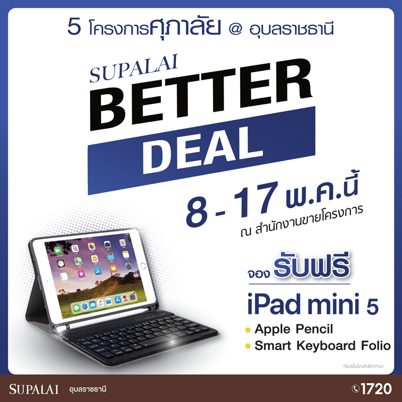 8-17 พ.ค. นี้ "B e t t e r D e a l" กับ 5 โครงการบ้าน ศุภาลัย @อุบลราชธานี พร้อมโปรดีๆ สุดคุ้ม Supalai Double Twenty แจก Double ลด Double เลือกรับ