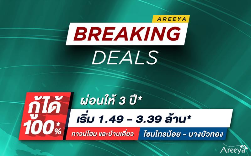 Areeya Breaking Deals ปลอดภาระ 3 ปี* วิกฤตนี้ต้องมีบ้าน กับโครงการ ทาวน์โฮม และบ้านเดี่ยว โซนไทรน้อย และ บางบัวทอง เริ่ม 1.49 - 3.39 ล้าน*