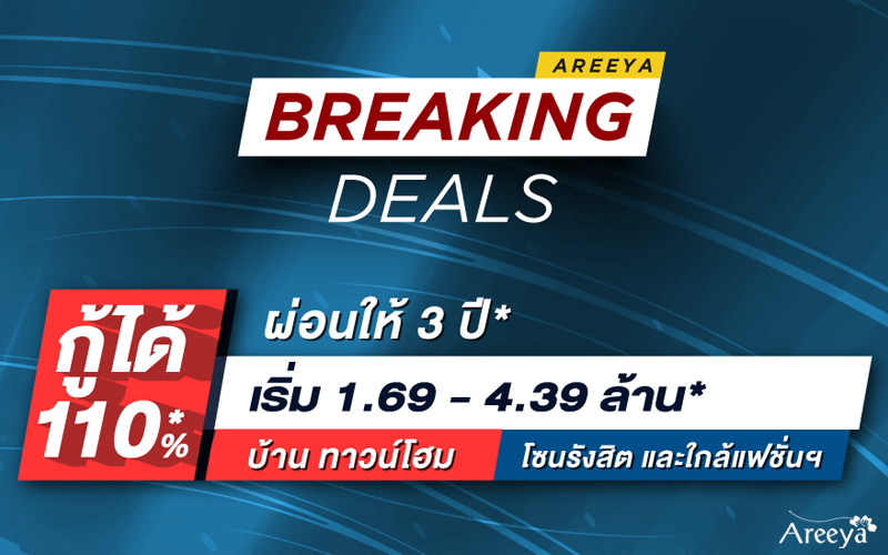 Areeya Breaking Deals ปลอดภาระ 3 ปี* วิกฤตนี้ต้องมีบ้าน กับโครงการ บ้าน ทาวน์โฮม โซนรังสิต โซนใกล้แฟชั่นฯ และใกล้ทางด่วนจตุโชติ เริ่ม 1.69 - 4.39 ล้าน*