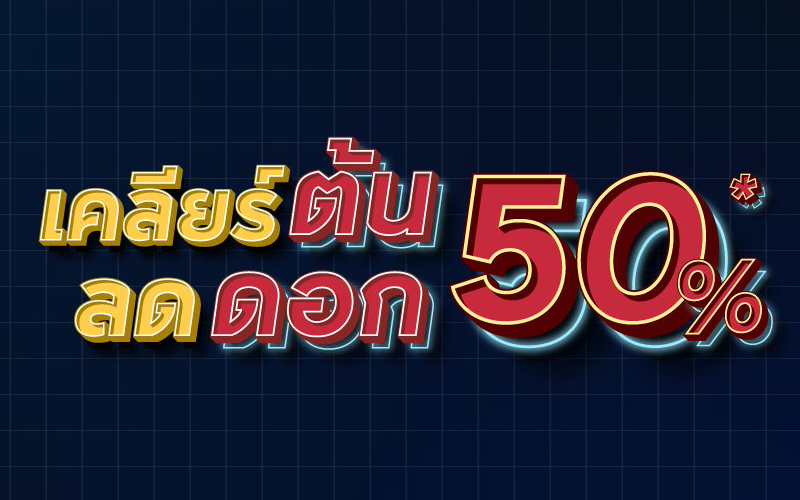 เคลียร์ต้นลดดอก 50% เคลียร์ต้น! ลดสูงสุด 5 ล้าน* พร้อมกู้เต็ม 100%* ลดดอก! ลดดอกเบี้ยสูงสุด 50%* ตลอดอายุสัญญา ฟรี! ค่าใช้จ่ายวันโอน* พร้อมของแถมอีกหลายรายการ* ลงทะเบียนรับสิทธิพิเศษ เริ่ม 4.99 - 60 ล้าน*