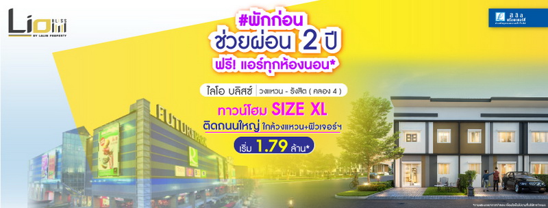 "ไลโอ บลิสซ์ วงแหวนฯ-รังสิต คลอง 4" ทาวน์โฮมใหญ่ Size XL 4 ห้องนอน 2 ที่จอดในร่ม ติดถนนใหญ่ ใกล้ วงแหวนฯ + ฟิวเจอร์พาร์ค รังสิต เชื่อมต่อถ.รังสิต-นครนายก / ถ.ลำลูกกา / ถ.สายไหม ถ.พหลโยธิน และ ถ.วิภาวดี เริ่ม 1.79 ล้าน*