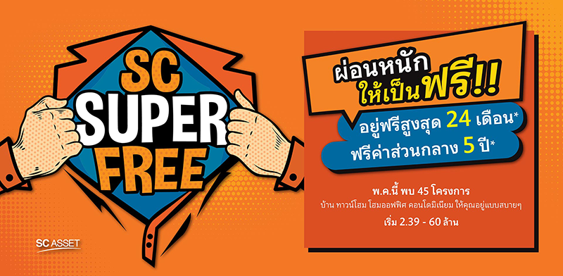 ผ่อนหนักให้เป็นฟรี! อยู่ฟรีสูงสุด 24 เดือน* ฟรีค่าส่วนกลาง 5 ปี* พฤษภาคม นี้ พบ 45 โครงการ บ้าน ทาวน์โฮม โฮมออฟฟิศ คอนโดมิเนียม ให้คุณอยู่แบบสบายๆ เริ่ม 2.39 - 60 ล้าน