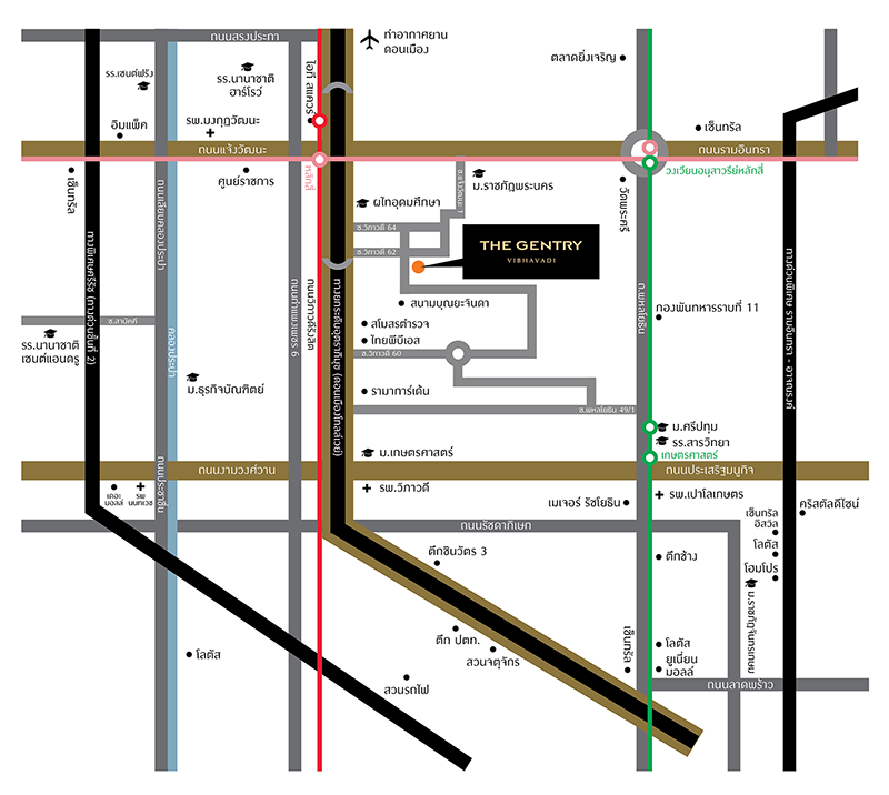 "เดอะ เจนทริ วิภาวดี (The Gentry Vibhavadi)" ตั้งอยู่ ซอยวิภาวดี 62 ห่างจากถนนใหญ่วิภาวดีรังสิต เพียง 400 เมตร โครงการจะอยู่หัวมุมถนน 4 แยกด้านขวามือ และทำเลนี้ยังสามารถเชื่อมต่อถนนใหญ่ได้อีก 2 ทางหลัก คือ ถนนพหลโยธิน และ ถนนแจ้งวัฒนะ
