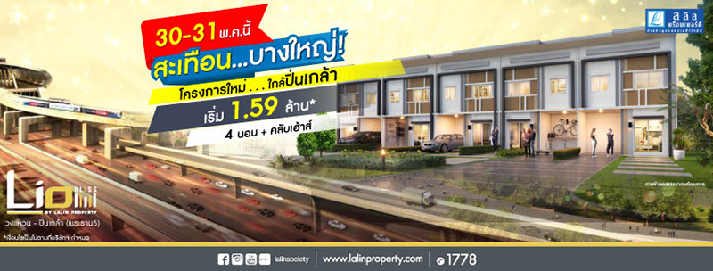 บริษัท ลลิล พร็อพเพอร์ตี้ จำกัด (มหาชน) เปิดจองโครงการใหม่ 30 - 31 พ.ค. นี้ รีบจองให้ทัน สะเทือนบางใหญ่!! โครงการใหม่ ใกล้ปิ่นเกล้า เปิดจองทาวน์โฮม 4 ห้องนอน+คลับเฮ้าส์ คุ้มสุดบนบางใหญ่ ไลโอ บลิสซ์ วงแหวน - ปิ่นเกล้า ใกล้ทางด่วน-ยกระดับบรมฯ